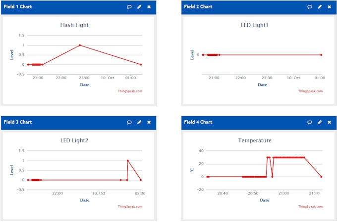 Thingspeak server is used here for data management in a single channel. All the sensors data and Lights status are recorded here. Also i made an android app where you can control the Lights & reads sensors (temperature , pressure & humidity) from anywhere.